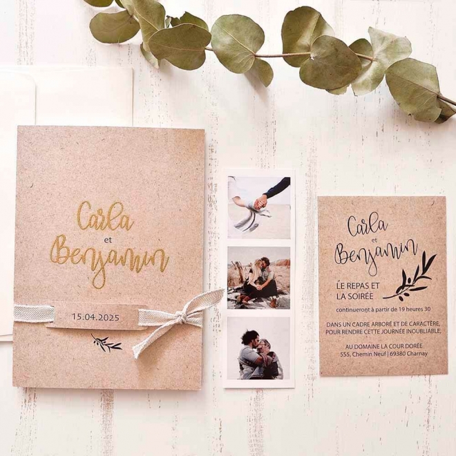 Le prix comprend: faire-part, ficelle, étiquette et photo.