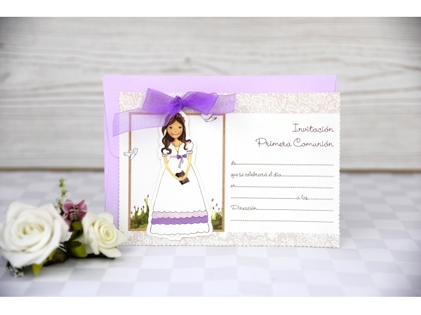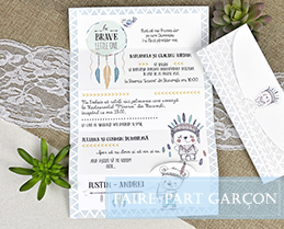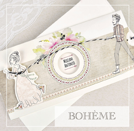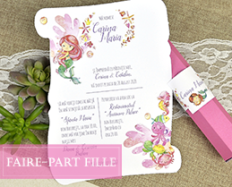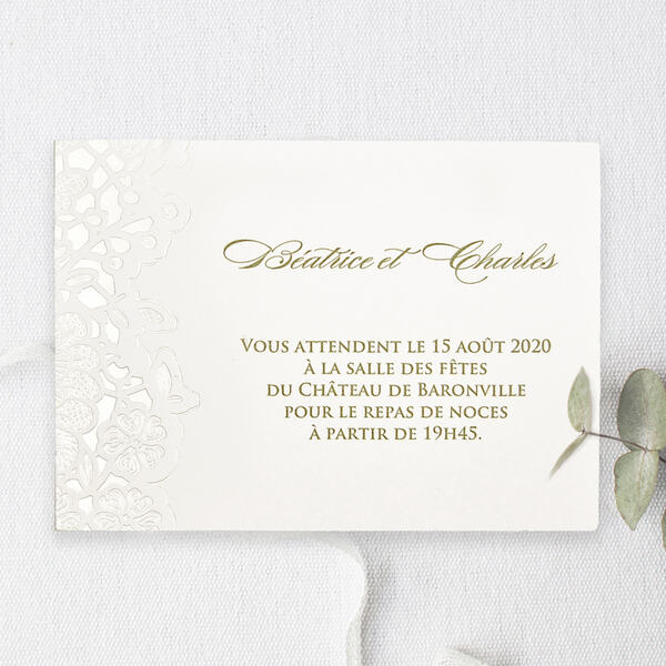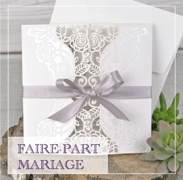 Ce faire-part très élégant. Découpé au laser et en couleur douce. Avec un ruban central qui le fait très romantique.